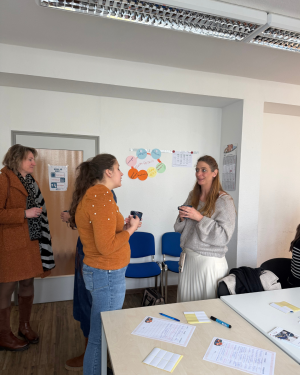 Bei Waffeln, Kaffee und kleinen Snacks stand zunächst das Projekt Wirtschaft integriert im Mittelpunkt. Ziel war es, Einblicke in die Arbeit, die Strukturen und die Zielsetzung des Projekts zu geben. Im Anschluss wurde bewusst Raum für Austausch geschaffen. Gespräche entstanden zwischen bekannten Partnern ebenso wie zwischen neuen Gesichtern. Genau hier liegt die besondere Stärke solcher Formate. Netzwerkarbeit lebt davon, dass Menschen ins Gespräch kommen, Erfahrungen teilen und voneinander lernen.